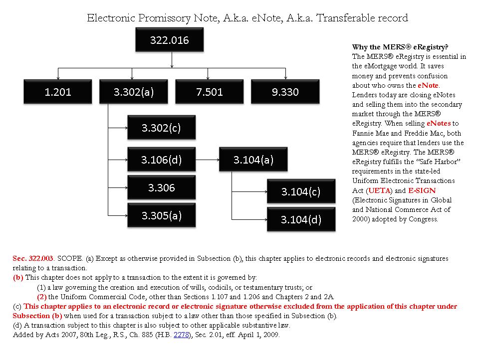 The following slides are a breakdown of the Uniform Electronic Transaction Acts, as published by Texas Legislators. It is ironic that this electronic transfer stuff originally was intended as an ideal way for insurance companies to utilize electronic contracts, and those contracts could be enforced by law. Some how, a lot of folks were mislead to believe it was a law for MERS members to legally conduct real estate transactions electronically? MERS members probably could have accomplished this process, but they took shortcuts, and bypassed vital laws to keep the real property mortgages "secured", thus rendering them unsecured. A debacle for all.